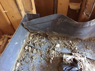 This is the demolition of a 2 year old shower because the shower pan was leaking due to a cut liner.